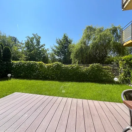 Apartament Z Garazem I Ogrodem Lägenhet lägenhet är belägen i Kołobrzegs Dzielnica Uzdrowiskowa distrikt, ca 95 km från Solidarity Szczecin-Goleniow flygplatsen. Denna lägenhet på 47 m^2 är belägen inom gångavstånd från Mariakyrkan, och erbjuder utsikt över trädgården samt terrass och innergård.
